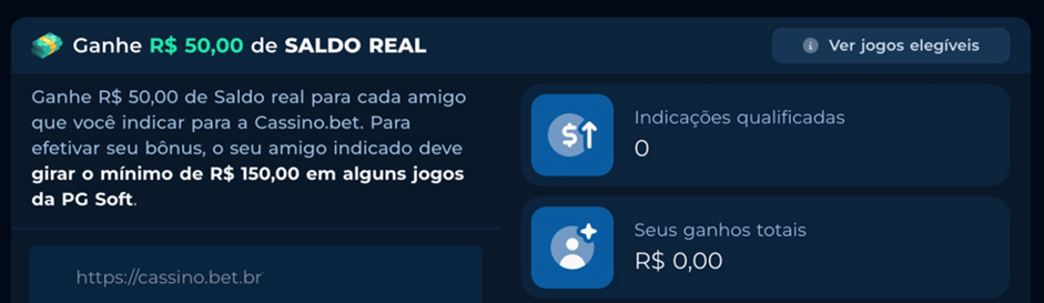 Convide amigos para se cadastrarem na CASSINO.BET.BR usando o seu link exclusivo de indicação: