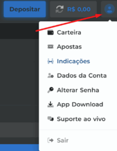 1.2 Clique no seu perfil (canto superior direito) e selecione a opção “Indicações”;